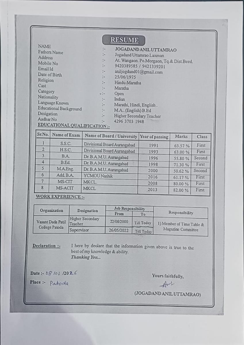 | 2 | Shri. Jogdand Anil Uttamrao | Junior Lecturer | See details | |